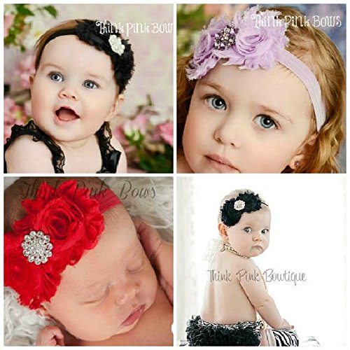 2つのヴィンテージシャビーローズーの間ににキラキラに輝く ラインストーンを上品に並べました☆ シンプルでエレガントなベビーヘアバンド