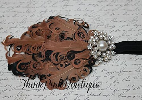 ☆存在感抜群フェザーとラインストーンのヘアバンド☆ブラウン&ブラック