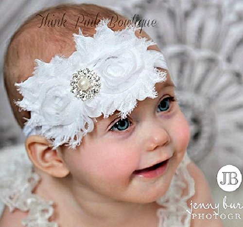 2つのヴィンテージシャビーローズーの間ににキラキラに輝く ラインストーンを上品に並べました☆ シンプルでエレガントなベビーヘアバンド