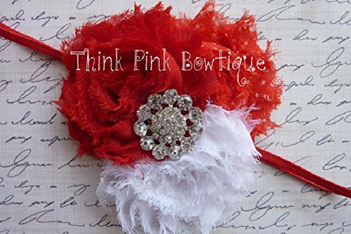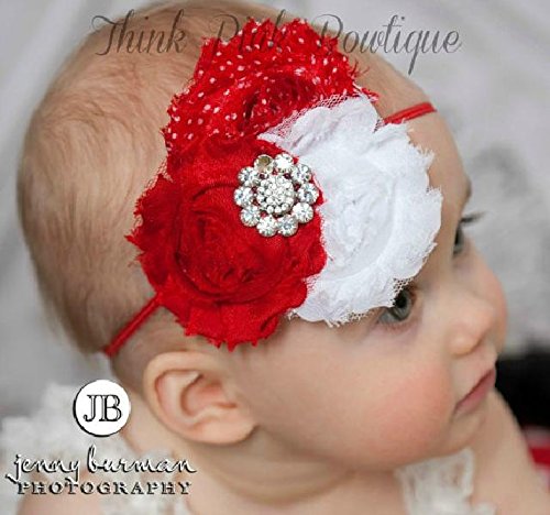☆トリプルシャビーローズのヘアバンド☆ホワイト&レッド