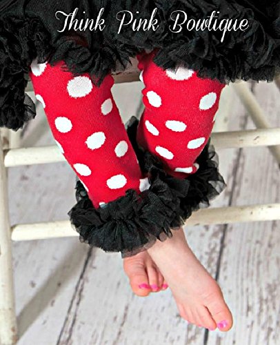 ベビーレッグウォーマー☆赤&白の水玉模様に黒レース0-2才