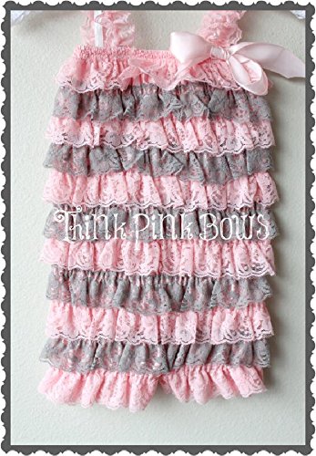 肩ひもショルダー&リボン付ソフトロンパース newborn-4T(50-110)☆ピンク&グレーストライプ