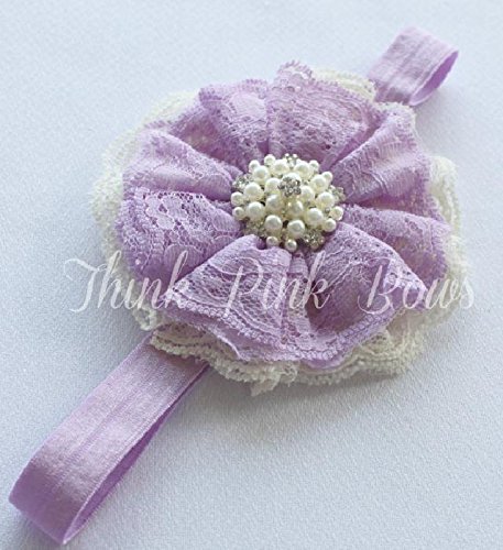 ☆上品なカラーレースフラワーとラインストーンのヘアバンド☆ラベンダー&クリーム