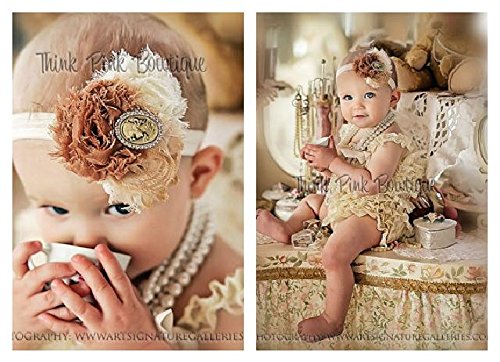 ロンパース&ヴィンテージヘッドドレス☆クリームカラー newborn-4T(50-110)【2点セット】