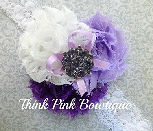 ☆パープルグラデーションシャビーローズ&ラインストーンのヘアバンド☆