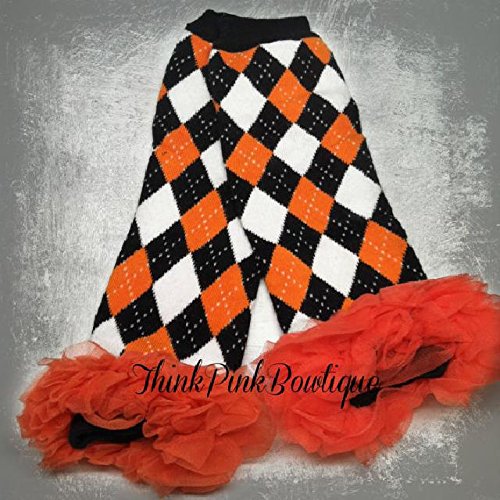ベビーレッグウォーマー☆オレンジ、黒&白のアーガイル0-2才