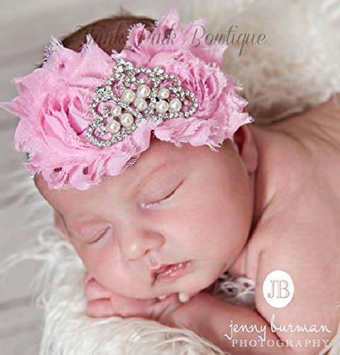☆ツインシャビーローズとラインストーンのヘアバンド☆ピンク&ティアラ