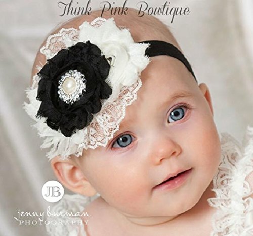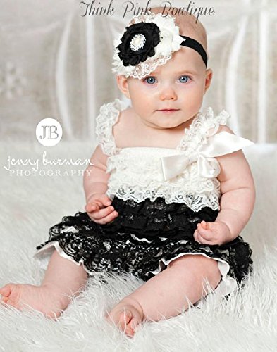ロンパース&ヴィンテージヘッドドレス☆ブラック&ホワイト newborn-4T(50-110)【2点セット】