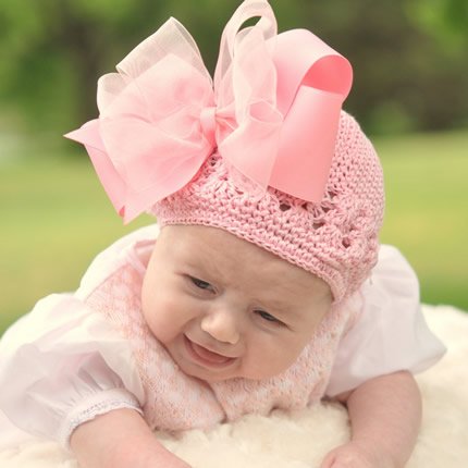 0才ベビーのためのビーニー帽子ピンク&デラックスピンクリボンヘアクリップピン付★ベビーの上級おしゃれ感☆ほんのわずかな赤ちゃん時期だからこそ、かぶせたい海外ママ達に選ばれ続けているビーニー帽子!日本にもやってきました