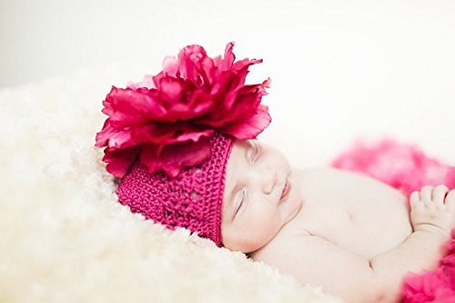 0才ベビーのためのビーニー帽子ラズベリー&おおきなお花ヘアクリップ付★ベビーの上級おしゃれ感☆ほんのわずかな赤ちゃん時期だからこそ、かぶせたい海外ママ達に選ばれ続けているビーニー帽子!日本にもやってきました