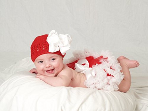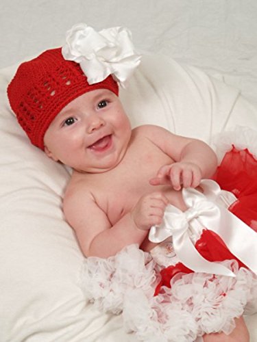 0才ベビーのためのビーニー帽子レッド&ゆるふわホワイトリボンヘアクリップピン付★ベビーの上級おしゃれ感☆ほんのわずかな赤ちゃん時期だからこそ、かぶせたい海外ママ達に選ばれ続けているビーニー帽子!日本にもやってきました