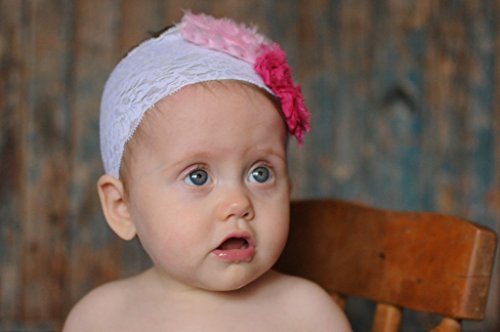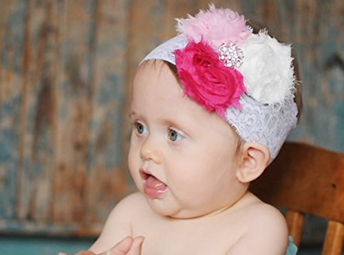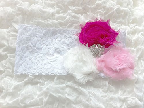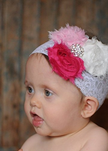【ベビーヘアバンド】3つのシャビーローズのワイドレースヘアバンド☆髪の短いベビーに似合うヘアアクセサリーちいさい頭にワイドレースが可愛いヘアバンド★