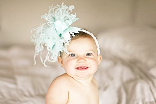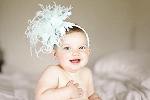 【ベビーヘアバンド】ふわふわファーとアクア&ホワイトのリボン【エンジェルアクア】ヘアクリップピン付こども用ヘアバンド★miciaの派手カワヘアバンドの人気エンジェルシリーズ写真栄えするボリュームだからスタジオ写真撮影にも相性バッチリ◎