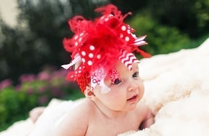 【ベビーヘアバンド】レッドドット×ふわふわファー☆のヘアクリップピン付ヘアバンド★今こどものヘアアクセがたまらなく可愛いっ!!ちいさな頭におおきなリボンヘアバンドを取りたがるお子様はヘアクリップピンにして髪の結び目に装着ーっ