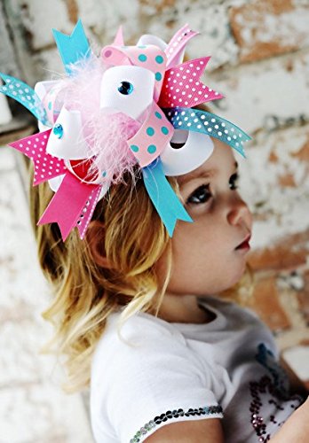 ピンク&ブルーのドットリボンとふわふわファーの派手カワヘアクリップピン