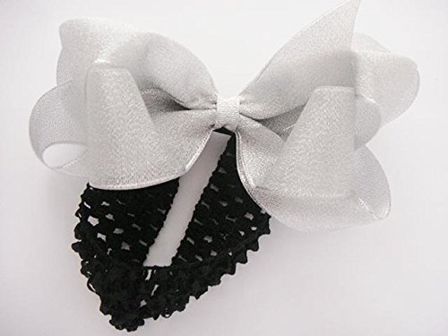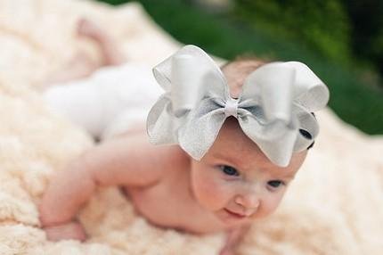 【ベビーヘアバンド】おっきなおっきなシルバーラメリボンクリップピン付ヘアバンド★ハーフバースデーや誕生日のスタジオ撮影に今こどものヘアアクセがたまらなく可愛いっ!!ヘアクリップピンでヘアアレンジも楽しんでっ