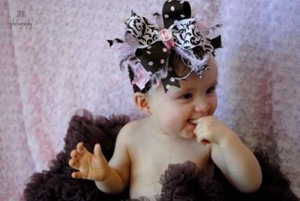 【ベビーヘアバンド】チョコレートブラウンとピンクリボンのヘアクリップピン付こども用ヘアバンド★お菓子の世界から飛び出てきたような可愛い色合いバンドから取り外しができるからいくつになっても使える優れものアイテム