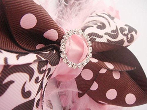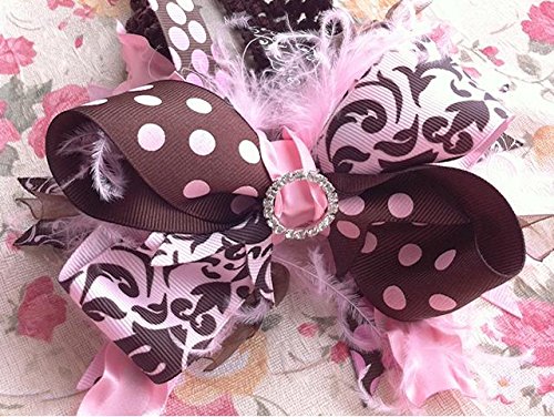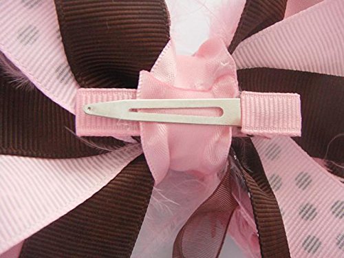 チョコレートブラウンとピンクリボンのヘアクリップピン付ヘアバンド