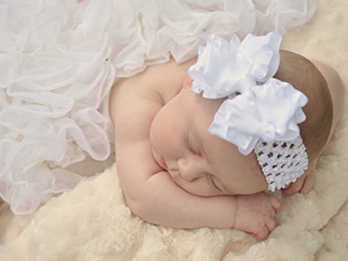ゆるふわ【ホワイト】ベビーヘアバンド★海外ママ達ご愛用ベビーヘアバンド純白天使取外しOKのゆるふわリボンのヘアクリップピン&ワッフルバンドセット!ハーフバースデー・誕生日のスタジオ写真撮影に!