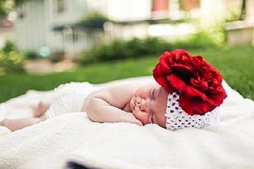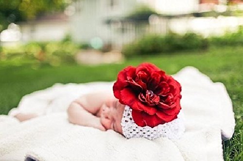 【ベビーヘアバンド】キュート!!大きなお花の派手カワヘアクリップ&キャップ【レッド×ホワイト】★ベビーにはキャップで、お姉ちゃんになったらヘアクリップピンでアレンジ