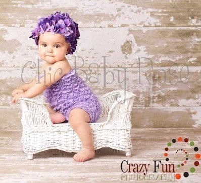カラフルベビーロンパースラベンダー【6-24months(60-95)】☆じわじわ人気のラベンダーカラーネックレスやヘッドドレスとの合わせ技のセンスが光るロンパース★ベビーのハーフバースデー・誕生日スタジオ写真撮影の衣装はこれに決まり