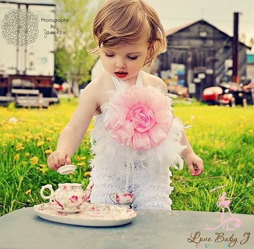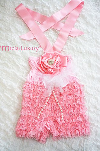 ベビーこどもロンパース☆フラワー&ファーブローチ付 サテン&レースロンパース 「Simply Girlie」 6months-3T シンプルななかにも美しさを感じさせられる繊細で華麗なベビーロンパース☆この素敵なデザインは希少です。