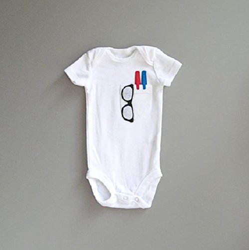 眼鏡とペン柄ロンパース可愛いくておもしろい海外デザイン newborn-24months(50-95)
