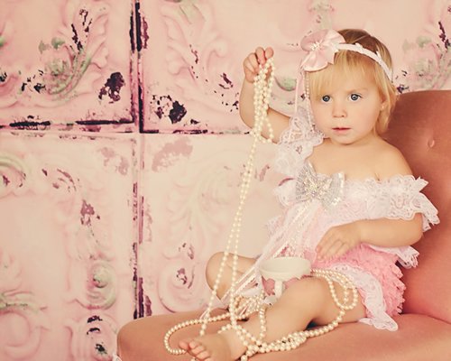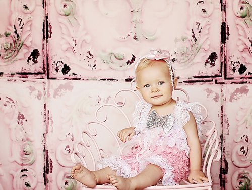 ベビーロンパース&ヘッドドレスセット☆プリンセスヴィンテージレース&サテンロンパース「Miss Congeniality」 newborn-3T(50-100) ラグジュアリー海外デザインのベビードレススタジオ写真撮影・誕生日・モデル