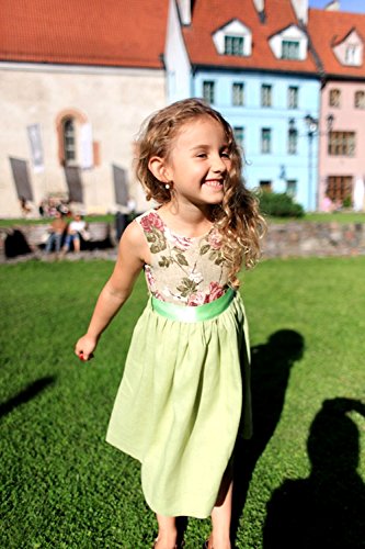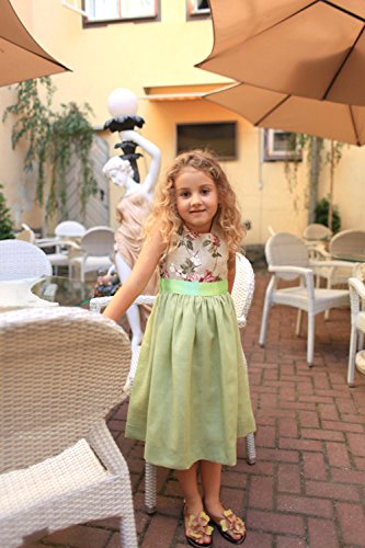 スワロフスキーがキラキラグリーンワンピース6months-6才★可愛いくて品がある!欧州ラトビアのデザイナーがオーダーを受けてから生地の裁断にはいり、ひとつひとつ丁寧につくりあげるセミオーダー。お届けまで数週間待つのが楽しみ!!