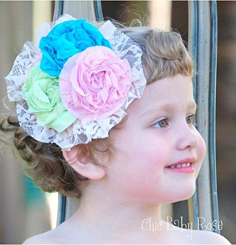 ローズレースブーケヘッドドレス☆細バンド付ブルーグリーンピンク可愛い色合いのお花をブーケのようにみたてたヘッドドレス☆海外デザイナーオリジナルハンドメイド☆
