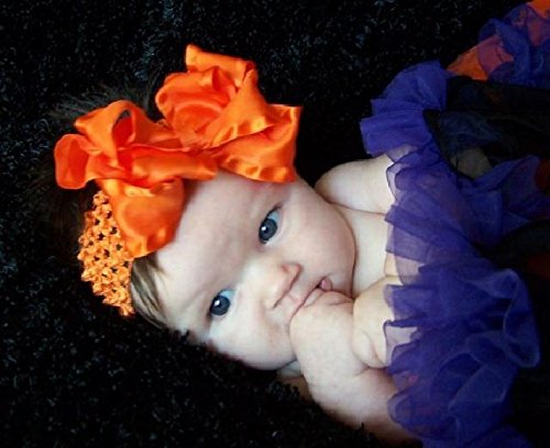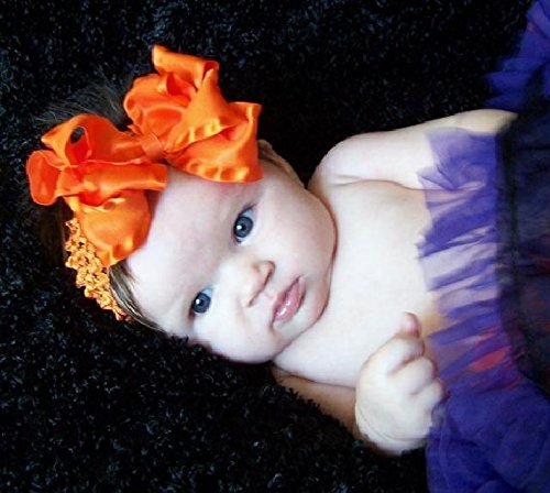 【ベビーヘアバンド】ダブルリボンがお花みたいな派手カワヘアバンド【オレンジ】★ベビーにはヘアバンドで、お姉ちゃんになったらヘアクリップピンでアレンジ