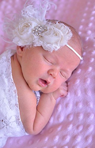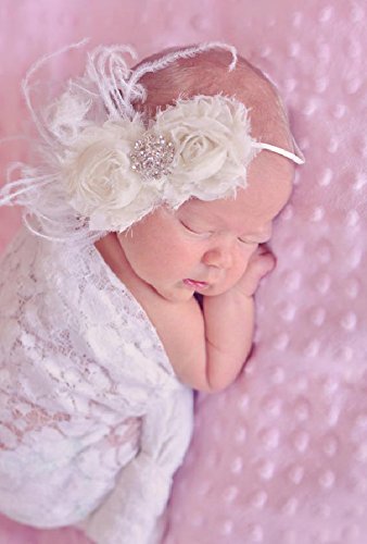 【ベビーヘアバンド】まるで天使!!結婚式に!!中央にきらきらのスタッズをあしらったお花とふんわりファーのヘアバンド【ピュアホワイト】★誕生日や入園入学のスタジオ撮影に!!