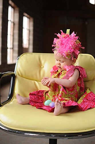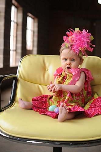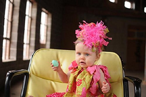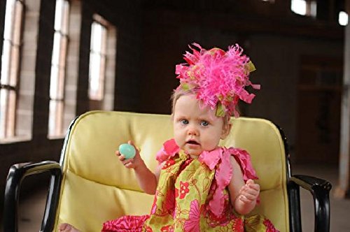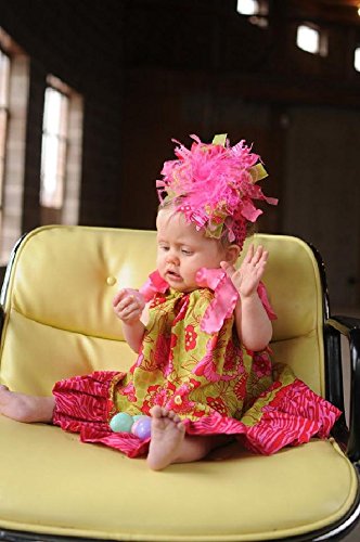 ショッキングピンクカラーのふわふわダチョウファーを中心に、ショッキングピンク&ミントカラーのドット柄、それぞれの単色カラー、なみなみのリボンをふんだんに使ったヘアバンド。ショッキングピンク&ミントカラーで元気な女の子らしい仕上がりになっています。