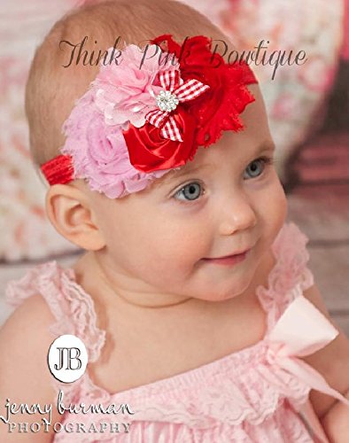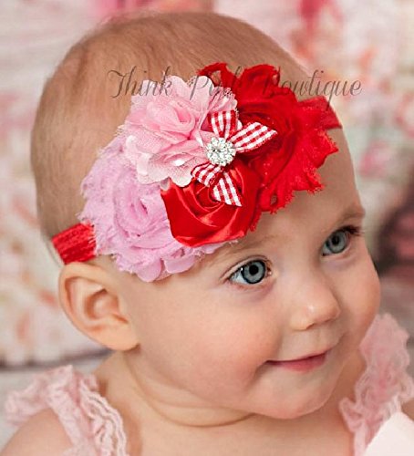 ☆素材の違うお花がエレガントお花とラインストーンのヘアバンド☆ピンク&レッド