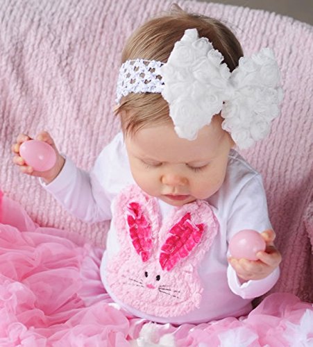 【ベビーヘアバンド】シャビーホワイトリボンの派手カワヘアクリップピン付ヘアバンド★今こどものヘアアクセがたまらなく可愛いっ!!ちいさな頭におおきなリボンヘアクリップピンにして髪の結び目に装着もできるっ