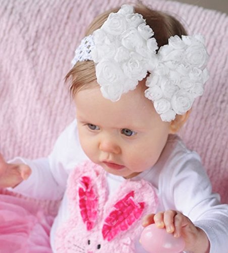 ちいさなシャビーローズをいっぱい敷き詰めたおおきなホワイトリボンのヘアバンド。お写真映えのするおおきなリボンはとっても華やかでボリュームある可愛い仕上げになっております。