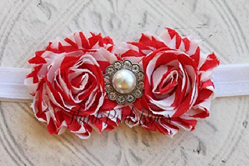 ☆個性的なシェブロンストライプシャビーローズとラインストーンのヘアバンド☆キャンディーケーン