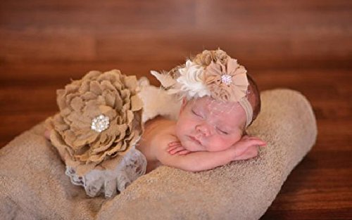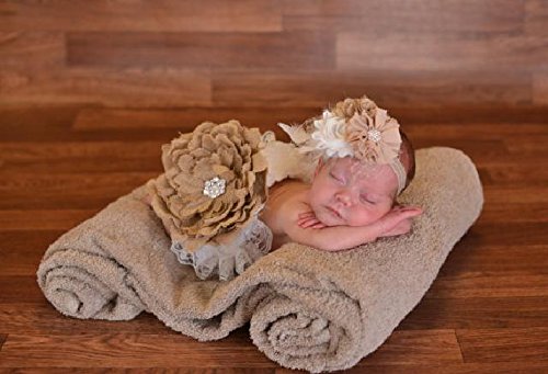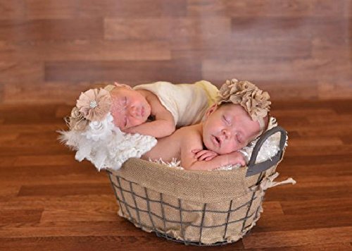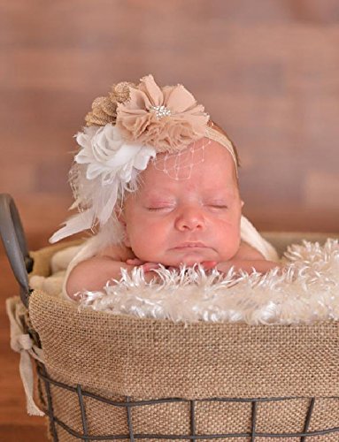 【ベビーヘアバンド】かわいい!!きらきらスタッズをあしらったお花のヘアバンド【ベージュ×クリーム】★誕生日や入園入学のスタジオ撮影に!!