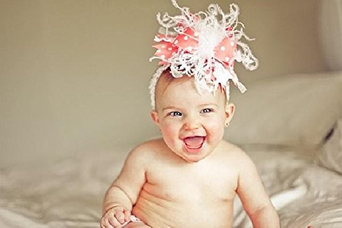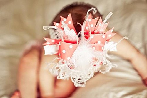 ベビーピンクカラーのふわふわダチョウファーを中心に、淡いコーラルピンクのドット柄と、ベビーピンクのなみなみリボンとシフォンリボンをふんだんに使ったヘアバンド。淡いピンクのグラデーションはふわふわ可愛らしい赤ちゃんにピッタリです!