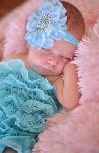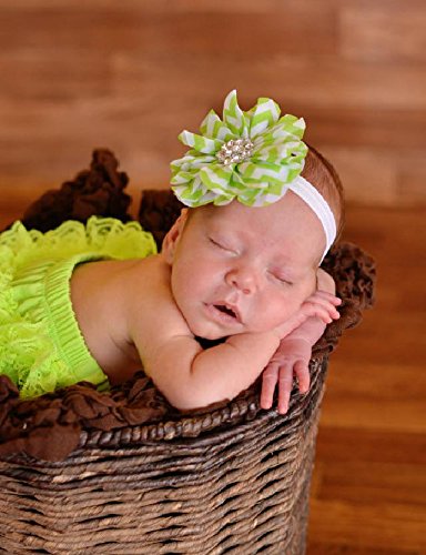 【ベビーヘアバンド】おしゃれ!!きらきらスタッズが付いたシェブロン柄のお花のヘアバンド【ミントグリーン×ホワイト】★誕生日や入園入学のスタジオ撮影や発表会に!!