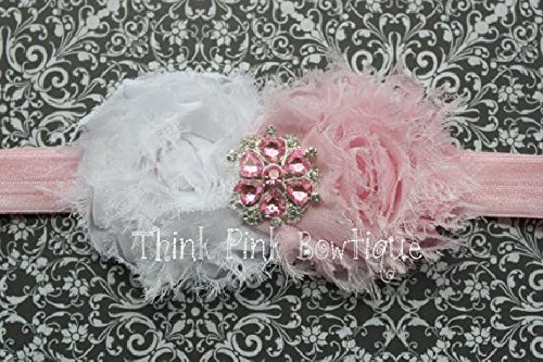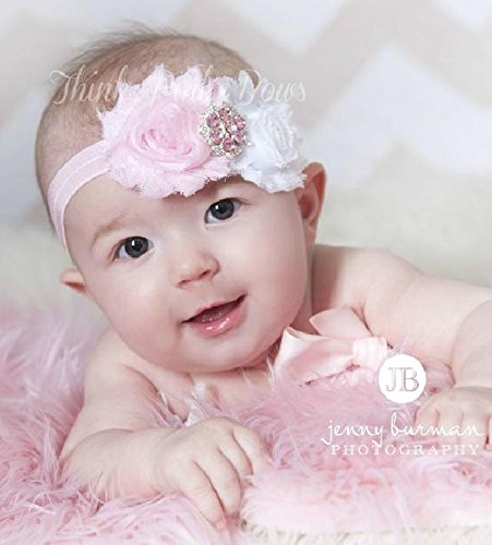 2つのヴィンテージシャビーローズーの間に、ラインストーンを中心とした鮮やかなお花☆ シンプルでエレガントなベビーヘアバンド
