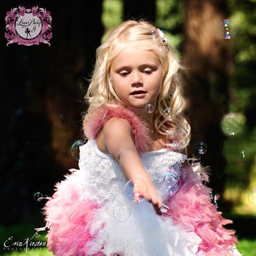 【ベビー&こどものラグジュアリードレス】ストレッチレース&マラボーショルダー☆ふんわりフェザードレス【Cotton Candy Couture】1歳から10歳 「きっと、一生忘れられない一着になるドレスです。」
