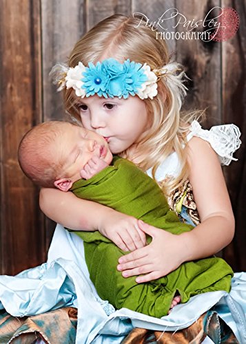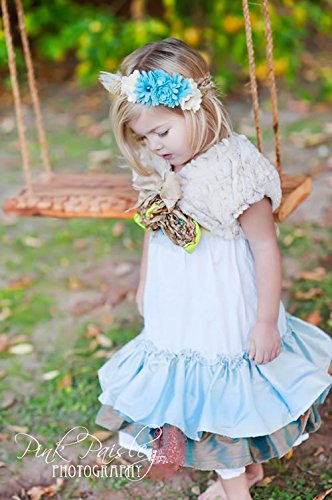 【ベビー&こどものラグジュアリードレス】アンティークブルー&クリームのフェルトフラワーヘッドドドレス【Blue Angel 】★海外の最先端をゆくベビー&こどものドレス。すべて1点物でオーダー後1カ月半かけて1着1着丁寧に製作されます。