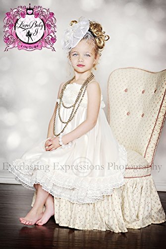 【ベビー&こどものラグジュアリードレス】シルキーサテン&レースのシャンパンカラーデイガウンドレス2才から12才★海外の最先端をゆくベビー&こどものドレス。すべて1点物でオーダー後1カ月半かけて1着1着丁寧に製作されます。