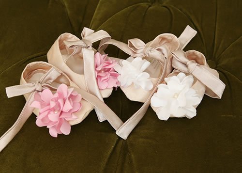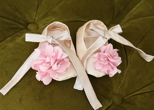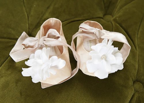 ベビーセレモニーシューズ☆お花ベルト付「Blessing SILK」newborn-24months(50・60・70・80・90・95) ドレスとお揃いのセレモニシューズ。ファーストシューズはこだわりの高級素材でデリケートなベビーの足を包んであげたい・・・