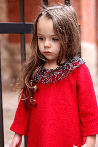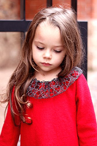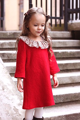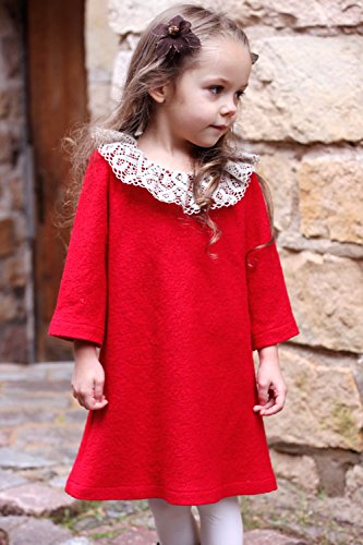 マイリトルサンタ!鮮やかな赤で気分UPレース襟付きレッドウールワンピース9months-6才★可愛いくて品がある!欧州ラトビアのデザイナーがオーダーを受けてから生地の裁断にはいり、ひとつひとつ丁寧につくりあげるセミオーダー★