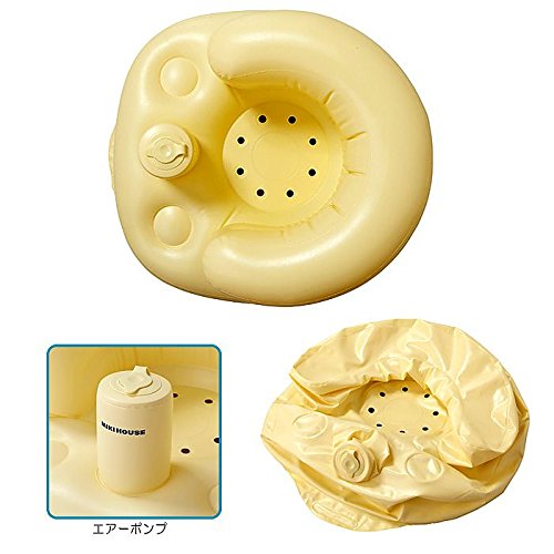 浴室でのバスチェアや お部屋での お座りの練習用として使える ベビーチェアです。低座面・低重心で 前倒れを抑制していて 7ヵ月から2才頃(12Kg)までの お子様にお使いいただけます。空気を抜くと たためるので 収納や持ち運びも便利です。