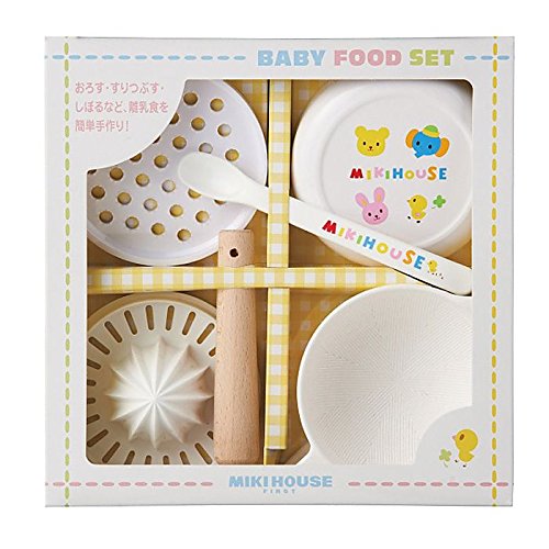 離乳食をスタートさせた 初期の離乳食作りが 簡単にできる ミキハウス ( mikiHOUSE ) 離乳食調理セットです。「こし網」 「果汁しぼり器」 「おろし器」 「すり鉢」 が揃ったセットで ご使用後は コンパクトに収納できる フタもついています。すり鉢は 底に滑り止めがついているので 安定感があって使いやすいデザインです。電子レンジ・食洗機も使用可能で 忙しいママに大変便利です。(使用不可のパーツがありますので取扱説明をご確認ください。)
