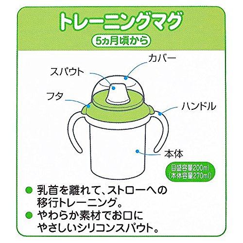 赤ちゃんが ミルクやジュースを コップで上手に 飲めるようになるまで 段階をふみながら トレーニングできる ミキハウス ( mikiHOUSE ) マグセットです。各パーツは すべて外せて 洗いやすく 食洗機も使えて 忙しいママにとても便利です。お手入れしやすい 簡単構造で 本体部分のみ 電子レンジも仕様可能です。