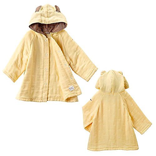 6層構造に重ね織りしたベビーバスローブです。やわらかく ふっくらとした肌触りで やさしい風合いが特長の ガーゼを使用しています。通気性が良く 軽くて柔らかいガーゼ素材は 吸湿性も良く 生地表面が平面のため 引っ掛かりもなく 赤ちゃんや お子様の デリケートな肌に 安心して使えます。毛羽落ちがほとんど無いのもオススメです。赤ちゃんを お風呂上りにすっぽりと 包んであげたり 水遊びで体が冷えないよう サッと羽織ったりなど便利に使えるアイテムです。 UVカット効果も備わって お子様の肌を紫外線から守ります。ロングセラーアイテムの 評判のバスローブで 御出産のお祝いにもおすすめです。
